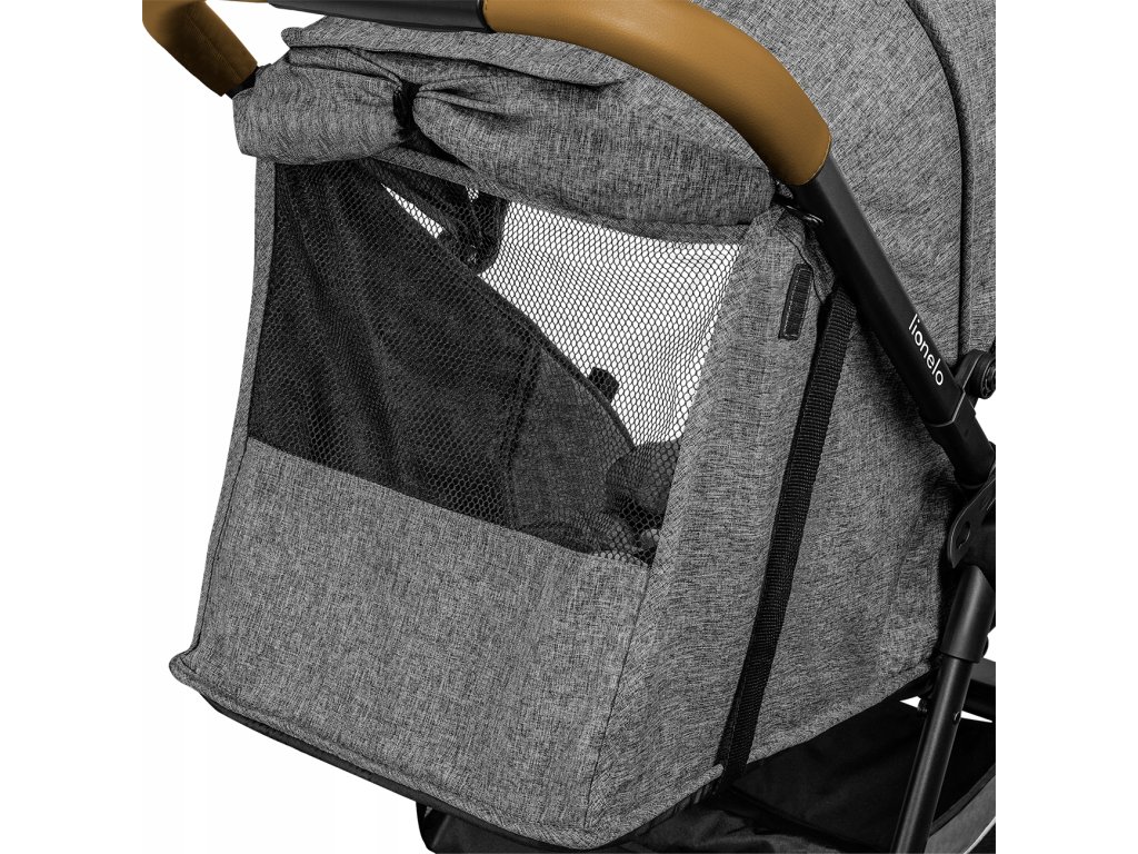 Sieť proti komárom, ktorá je súčasťou sady, je ukrytá v špeciálnom vrecku na zips v stupačkách kočíka.