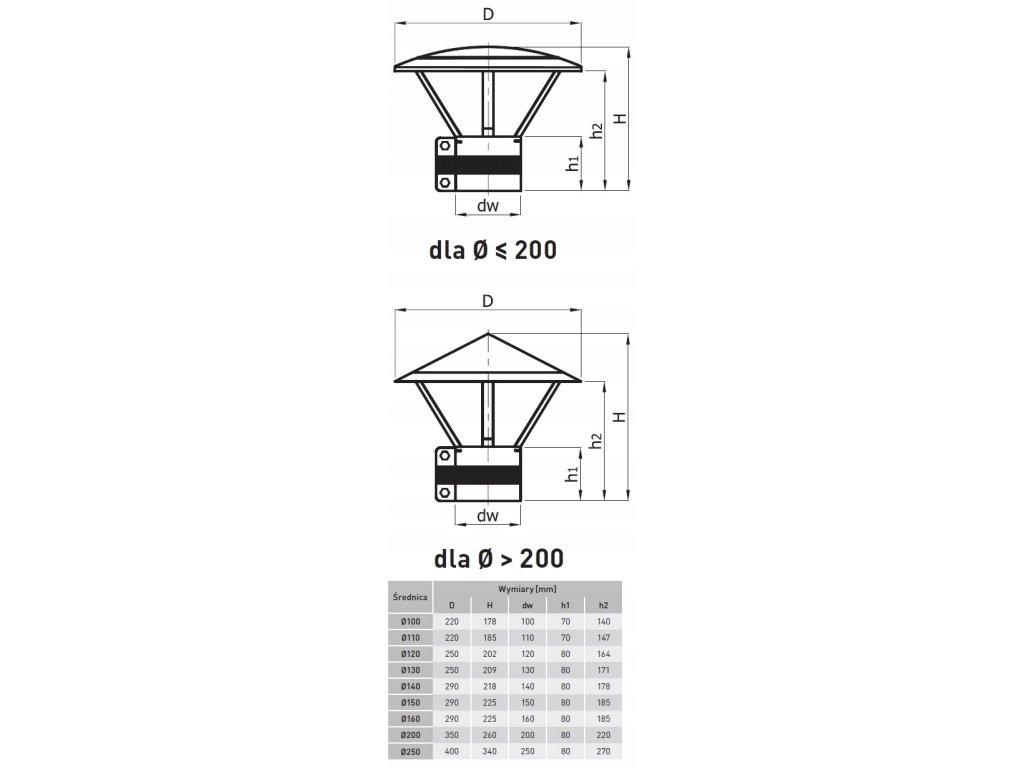 DASZEK KOMINOWY Z OBEJMĄ przeznaczony jest do zabudowy wylotów przewodów kominowych wentylacyjnych i spalinowych o działaniu grawitacyjnym.
