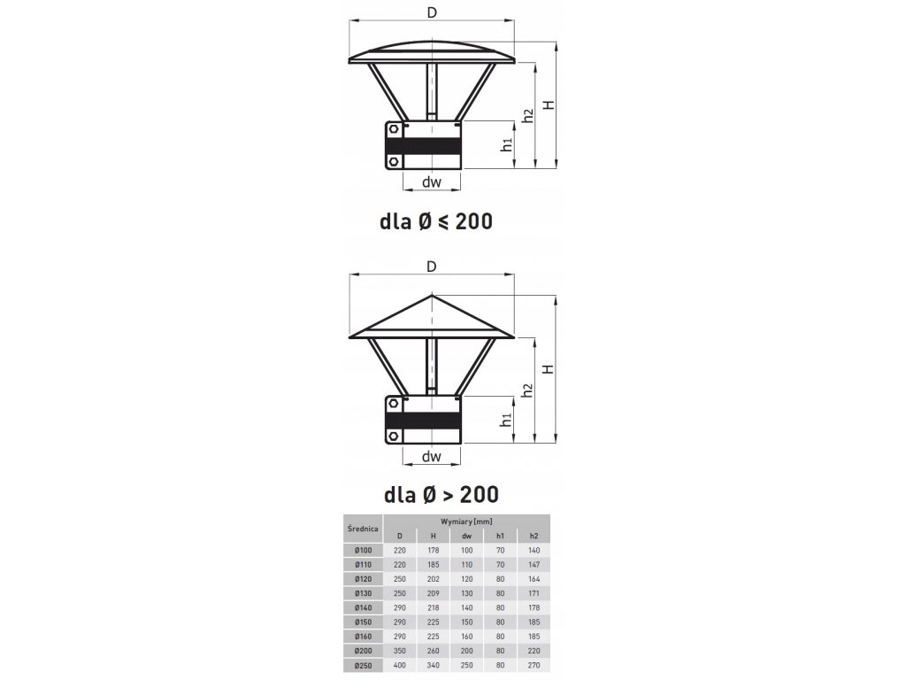 DASZEK KOMINOWY Z OBEJMĄ przeznaczony jest do zabudowy wylotów przewodów kominowych wentylacyjnych o działaniu grawitacyjnym.