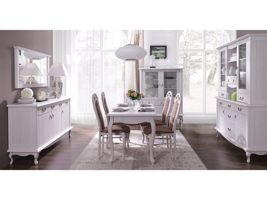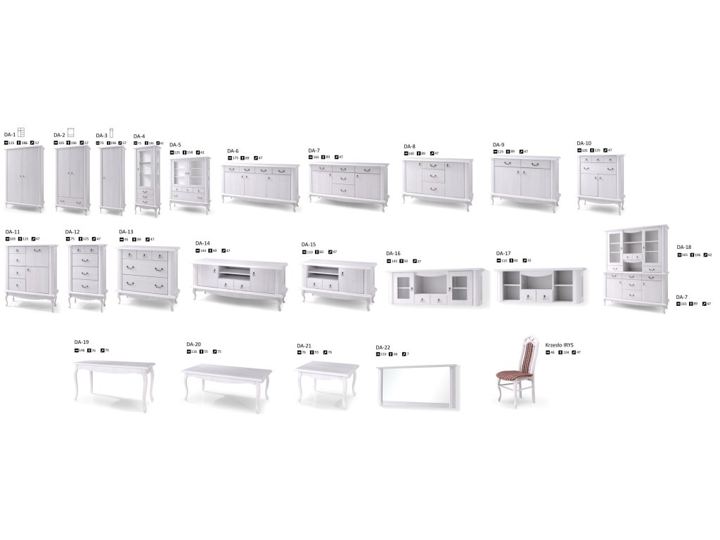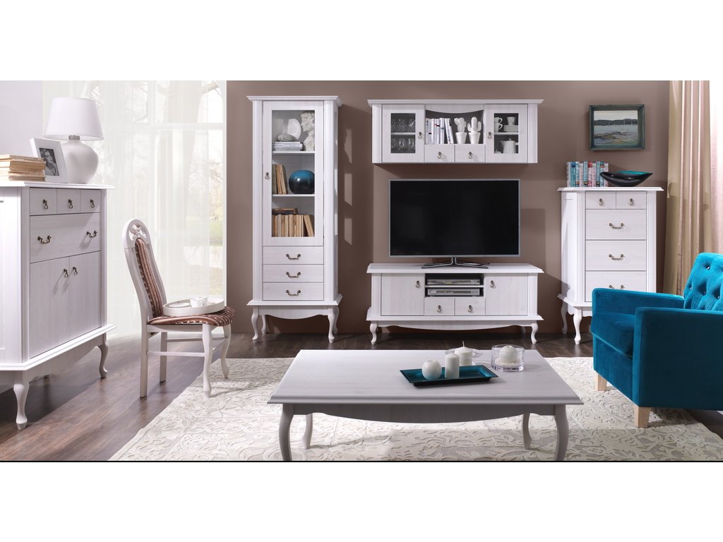 Meble systemowe GLAMOUR spodobają się klientowi preferującemu styl klasyczny /retro/ stylizowany. Meble wykonane są z płyty laminowanej, nóżki z drewna, a uchwyty z metalu. Meble dostępne są w kolorach dąb lefkas, oraz sosna snieżna.