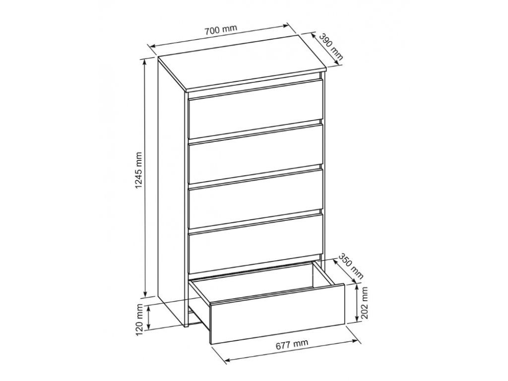 Komoda 5 zásuviek v troch farebných prevedeniach