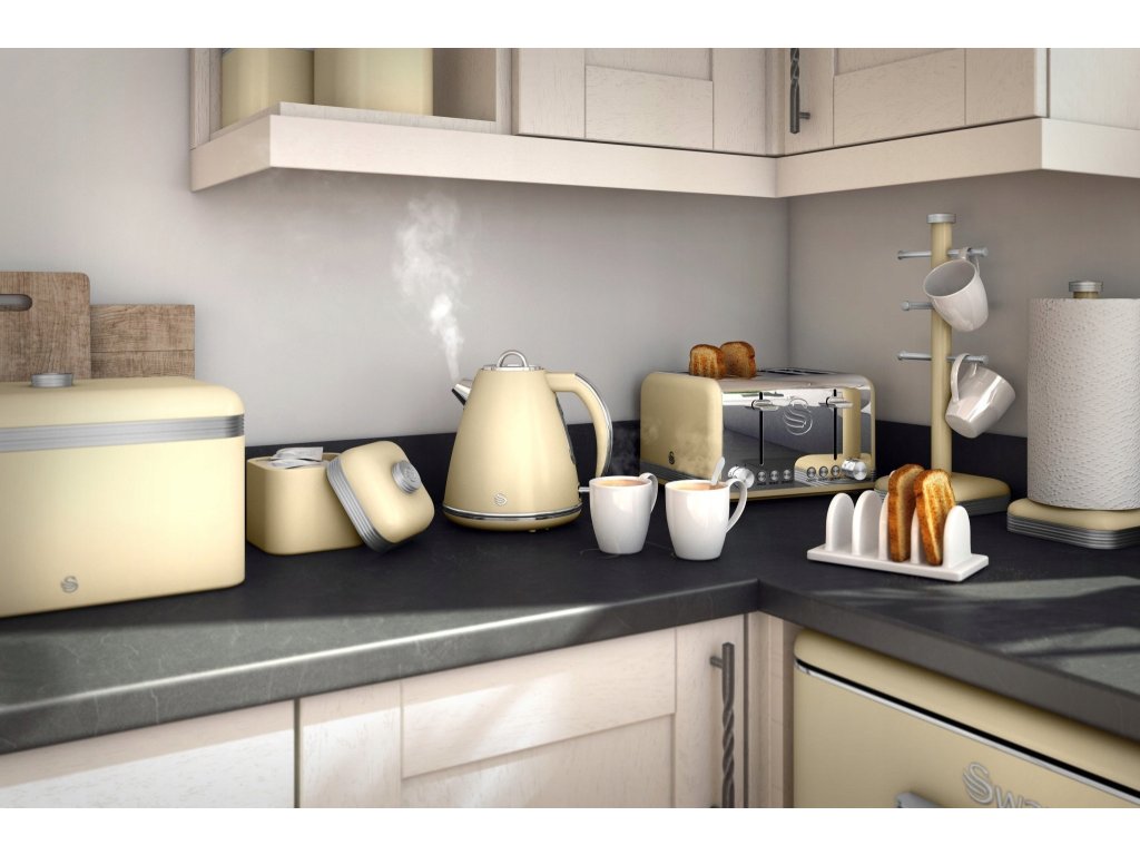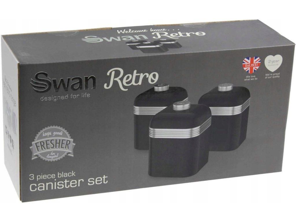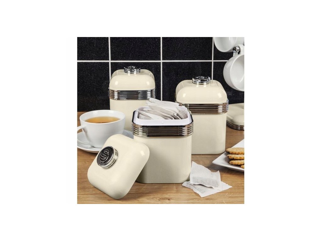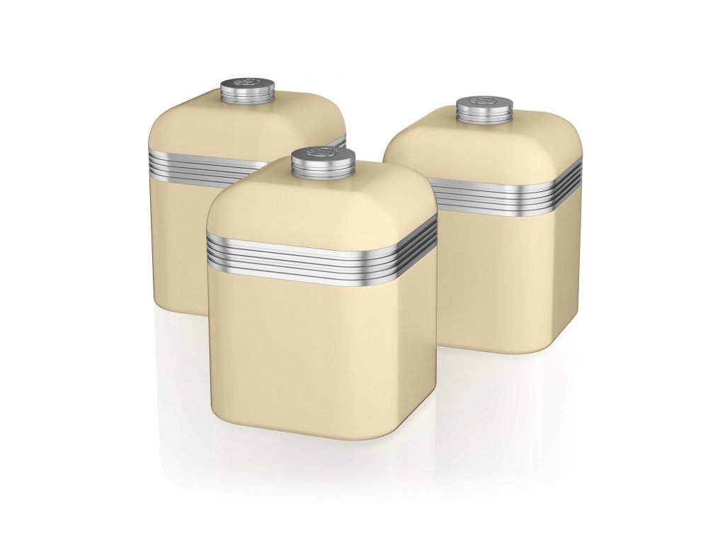 POJEMNIK 3 POJEMNIKI SWAN RETRO CREAM NA KAWĘ CUKIER I HERBATĘ STALOWE