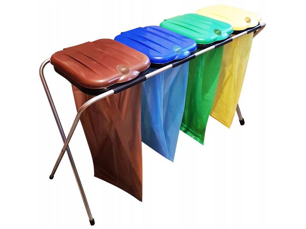 KOSZ Stojak NA WORKI DO SEGREGACJI ŚMIECI 4 STANOWISKA