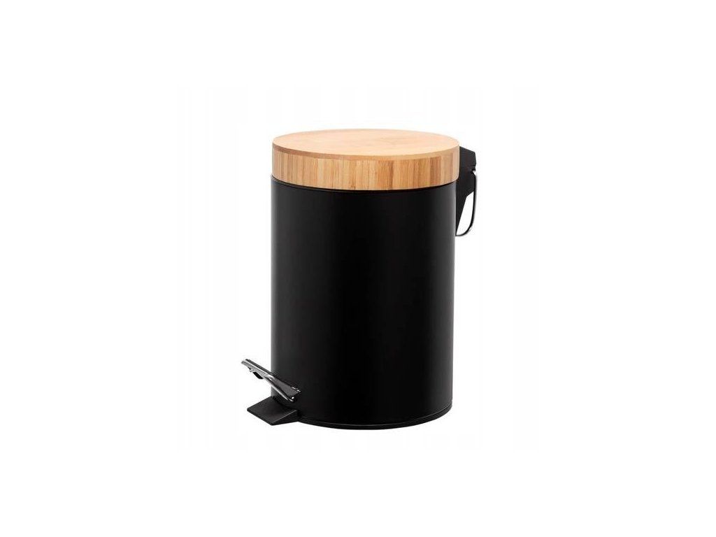 KOSZ POJEMNIK NA ŚMIECI 3L Z KLAPKĄ, PEDAŁEM CZARNY MAT POKRYWA BAMBUS