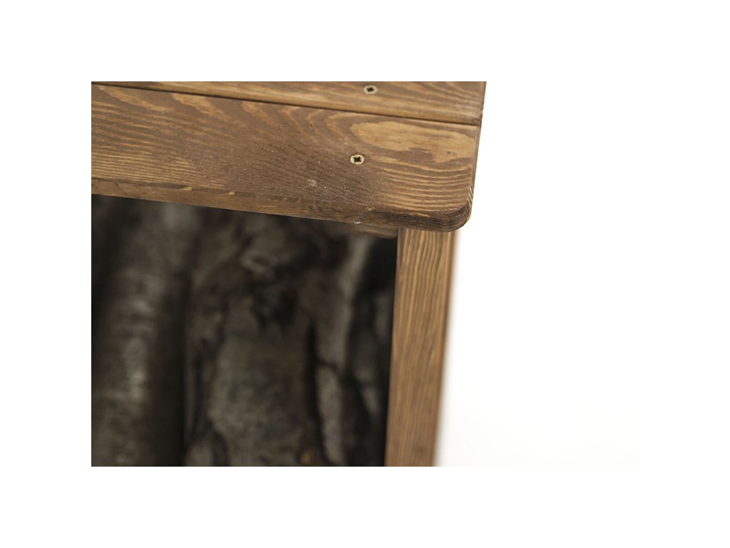 Stojak został wykonany z drewna sosnowego. Dzięki solidnemu wykonaniu stojak będzie służył przez długie lata. Dodatkowo estetyczne wykonanie sprawi, iż będzie on eleganckim dodatkiem przy kominku w salonie.