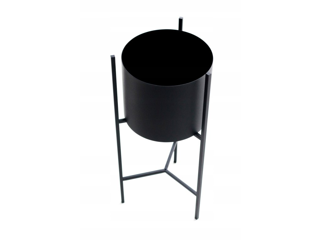 Przedmiotem aukcji jest czarny stojak wraz z czarną metalową osłoną na donicę. Stojak jest dwustronny, donicę można ustawić na wyższych lub niższych nóżkach, na wysokości (od ziemi do początku osłonki): 62 lub 74 cm.