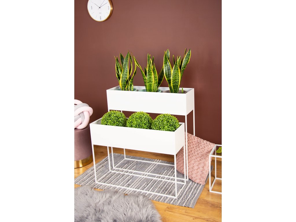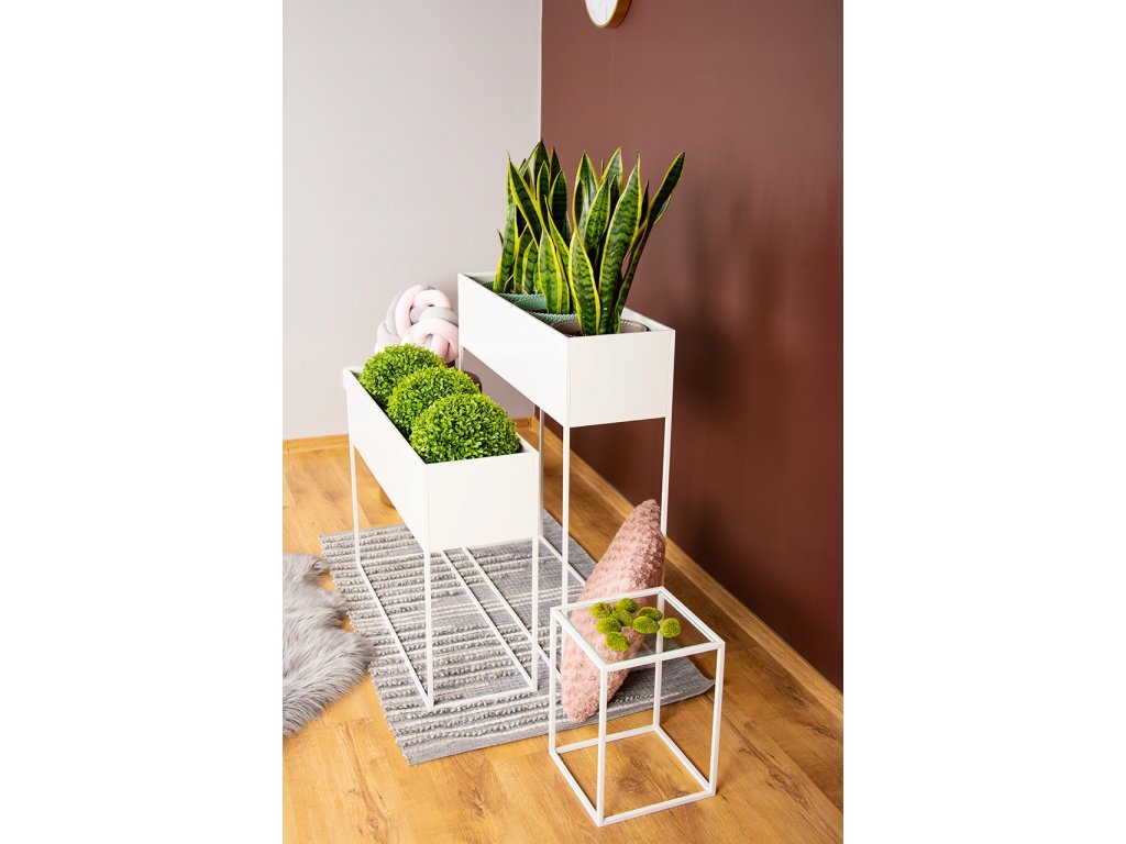 Stojak na donice dzięki surowości materiału jakim jest stal oraz delikatnym liniom kwadratowych prętów doskonale sprawdzi się w aranżacji minimalistycznych i nowoczesnych wnętrz. Ozdoba może służyć nie tylko wyeksponowaniu kwiatów we wnętrzu lecz także jako stojak na książki, zabawki czy podręczny barek.