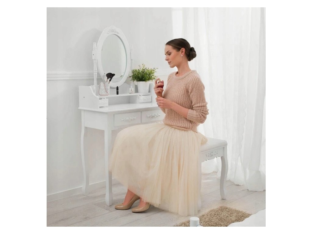 Stolík Vám s radosťou poskytne tento čarovný toaletný stolík s pohodlnou čalúnenou taburetkou v cene.