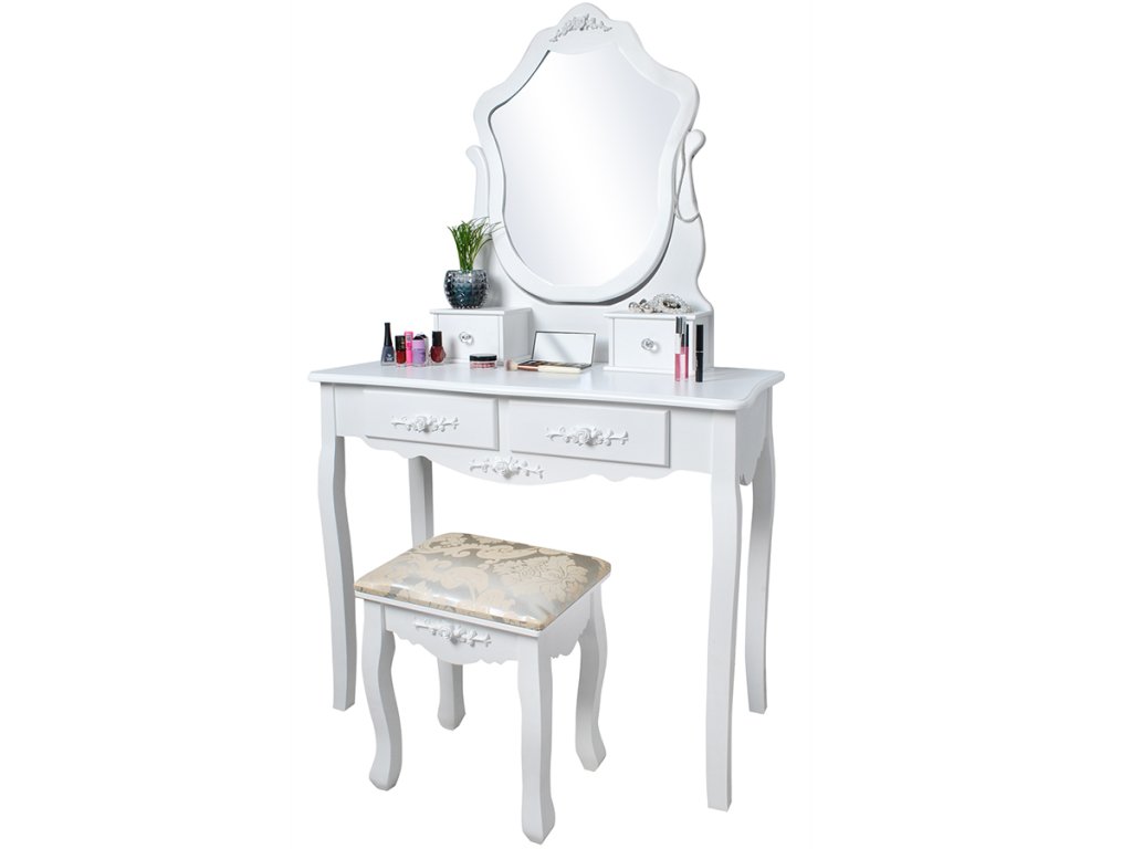 Krásny, štýlový toaletný stolík s veľkým otočným zrkadlom dekoratívnym sedadlom - stoličkou .