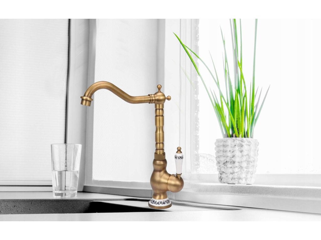 Kuchynský faucet VYSOKO stojaci RETRO OLD GOLD