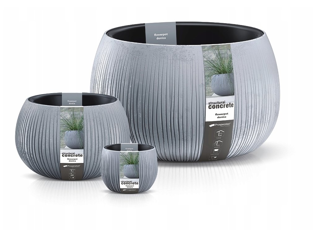 Doniczki wykonane z trwałego plastiku, który imituje beton. Nowoczesny design, doda każdemu wnętrzu stylu i elegancji. Mogą służyć jako osłonki, ale także jako doniczki.
