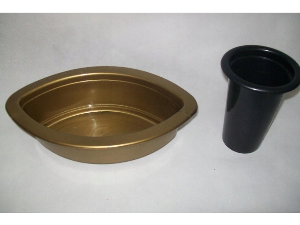 Kompozycja na grób  (tzw. stroik, ikebana) jest wykonana na sztucznej chonie która jest zabetonowana w doniczce podłużnej tzw. łódka o wymiarach 30x20x8 cm.