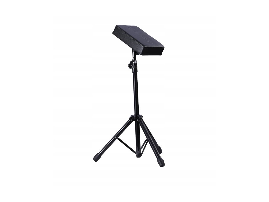 Wytrzymały podłokietnik do tatuowania, wykonany z czarnej stali.