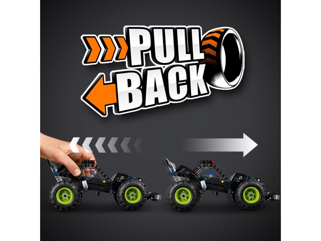 • Dzięki napędowi typu pull-back monster truck i łazik terenowy mogą pędzić tak, jakby były prawdziwe.