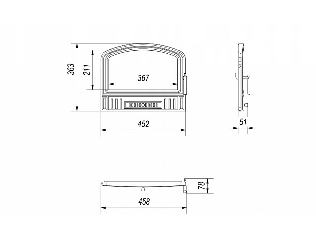 Drzwiczki kominkowe o prostym kształcie do pieców wolnostojących KOZA K9 wykonane z żeliwa.