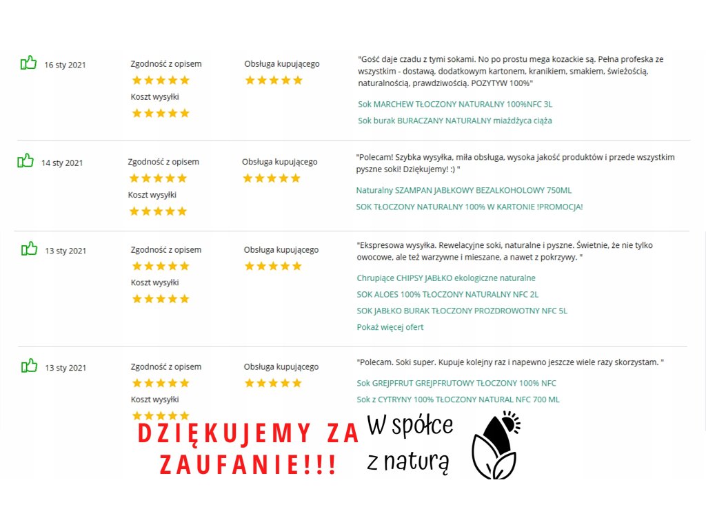 Opinie o naszych sokach oraz całą ofertę możecie zobaczyć na: Facebook/Tloczniaszymanowice na którym obserwuje nas już  5000 użytkowników.