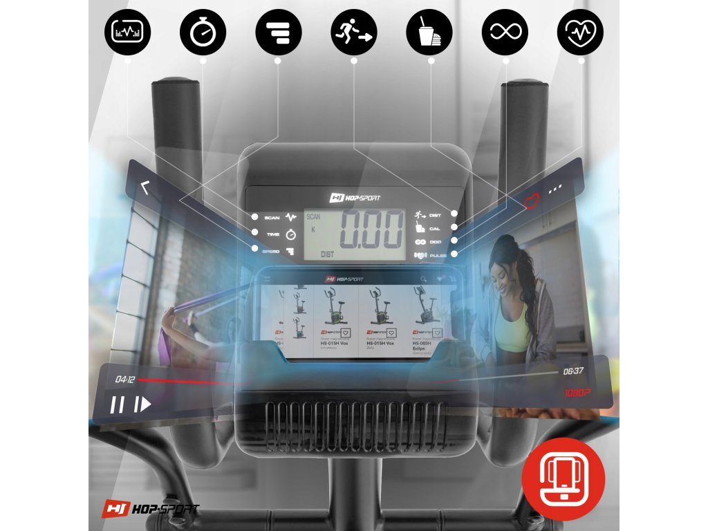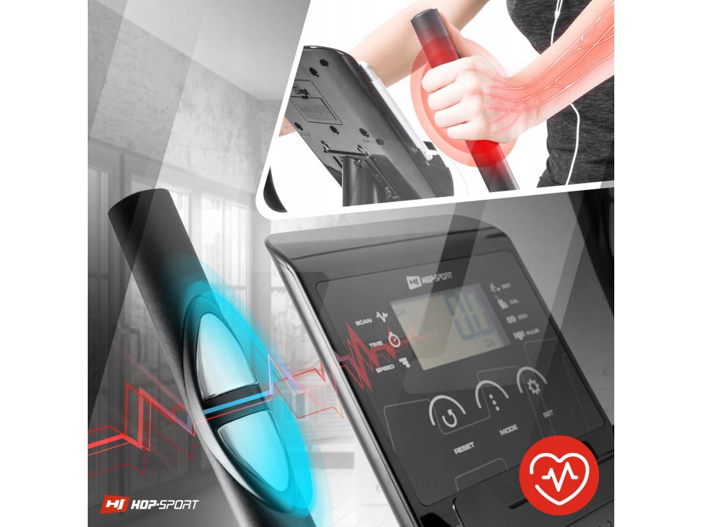 Na dodatkowych uchwytach orbitreka znajdują się sensory dotykowe - trzymając na nich dłonie możesz kontrolować puls w trakcie treningu. Wynik pomiaru widoczny jest na wyświetlaczu. Puls to kluczowy parametr, który trzeba kontrolować w trakcie ćwiczeń. Zbyt wysokie tętno może doprowadzić do przetrenowania, a przy zbyt niskim trening nie przyniesie oczekiwanych rezultatów. Optymalne tętno pomoże skuteczniej osiągnąć zamierzone efekty, niezależnie od tego, czy jest to poprawa kondycji fizycznej, czy utrata zbędnych kilogramów.