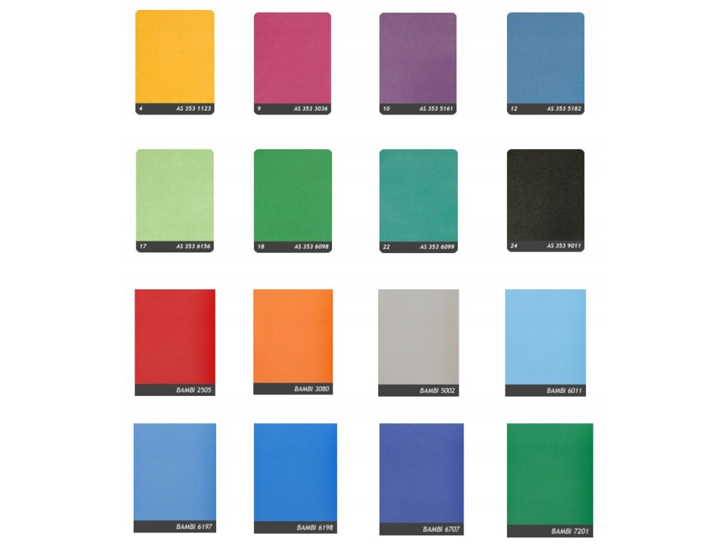 Materac robiony jest domyślnie w kolorze fioletowym(AS 353 5161), ale możemy dla państwa zrobić go w innym kolorze z naszego katalogu pokazanego obok. Po wybraniu koloru należy napisać jego nazwę w komentarzu do zamówienia.