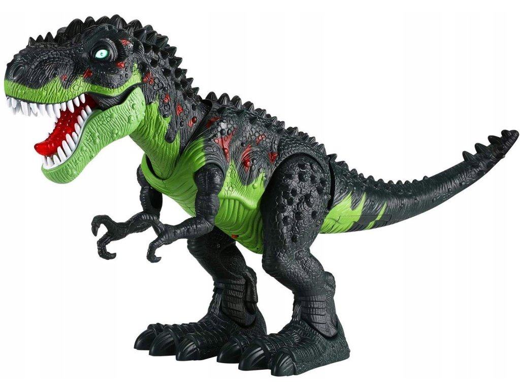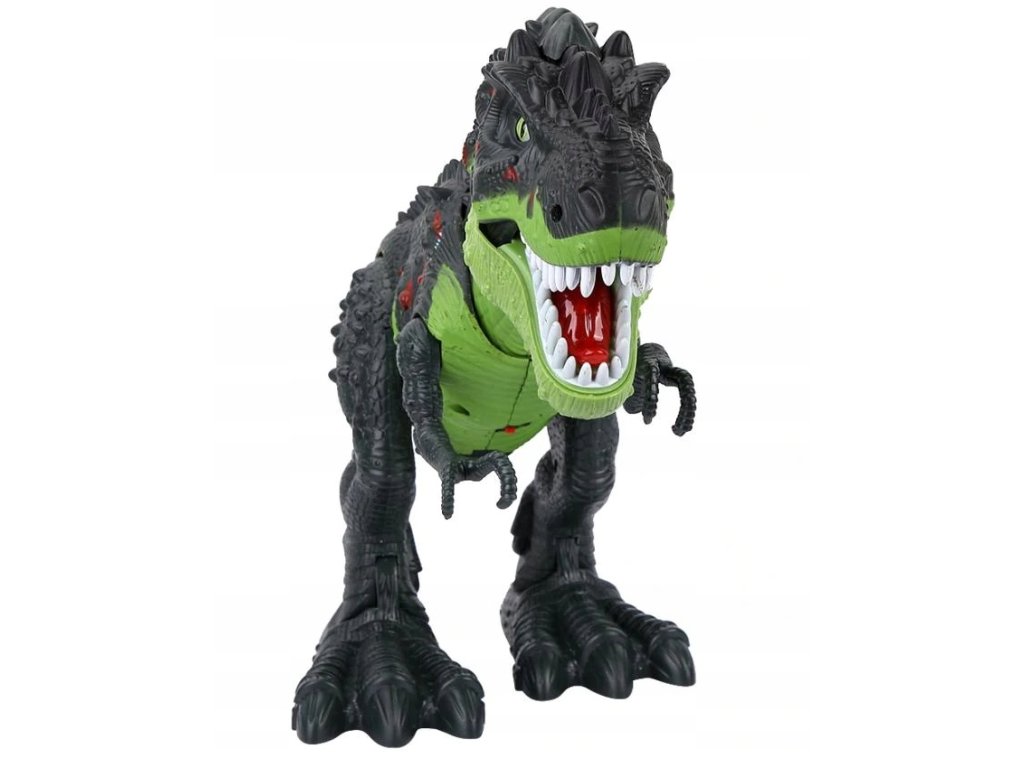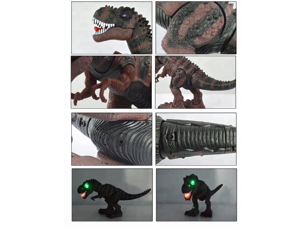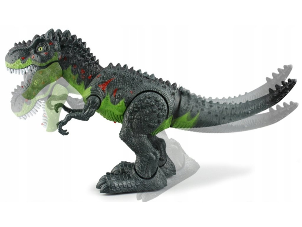 Dinozaur po włączeniu przemieszcza się do przodu poruszając przy tym nogami, łapami, głową, paszczą i ogonem.