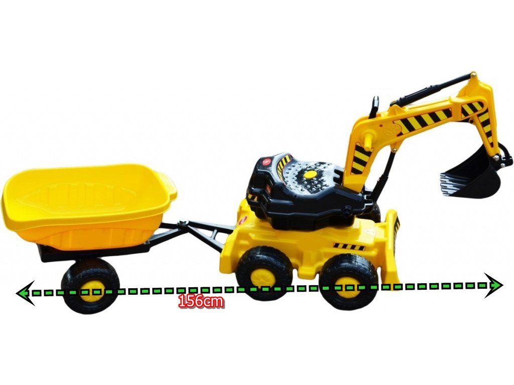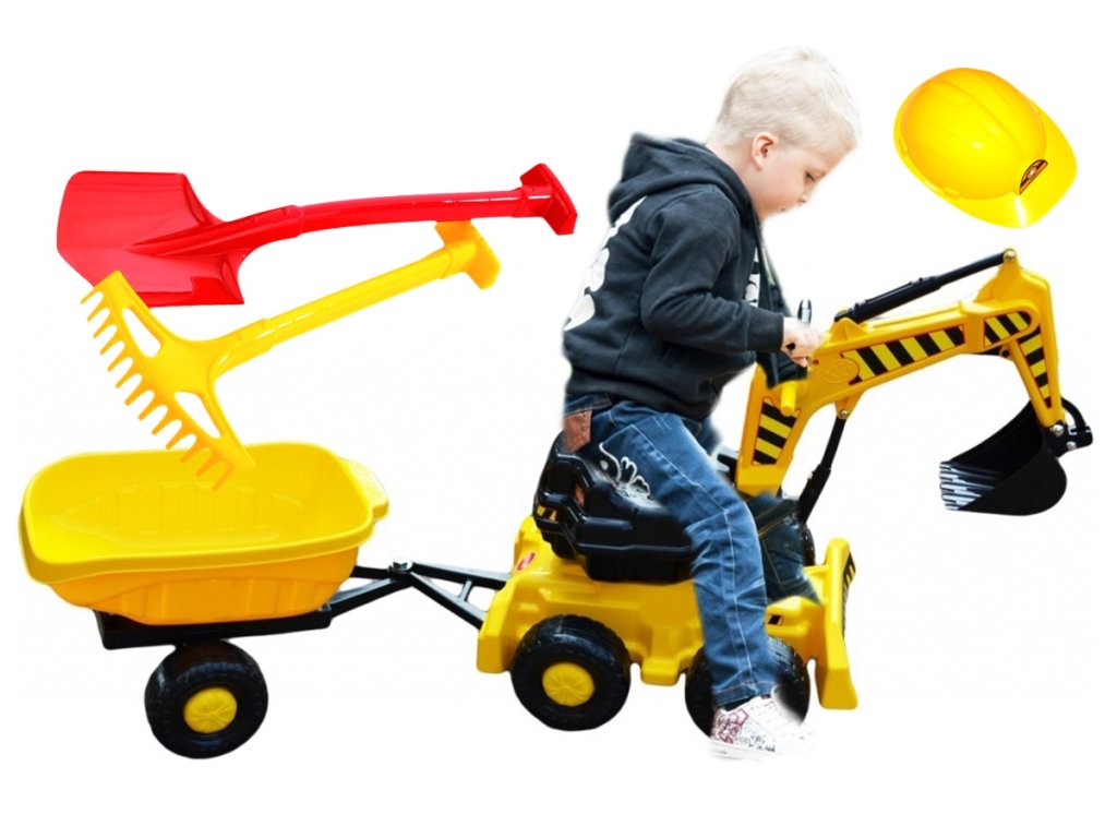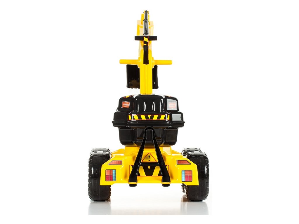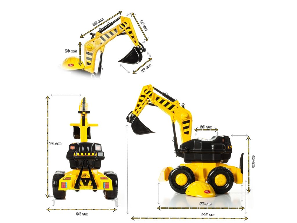 DZIECKO MOŻE STEROWAĆ RUCHOMĄ ŁYŻKĄ KOPARKI, OBRACAĆ SIĘ NA OBROTOWYM SIEDZISKU NAWET O 360 STOPNI, ORAZ PORUSZAĆ CAŁYM ZESTAWEM DO PRZODU I DO TYŁU ODPYCHAJĄC SIĘ NOGAMI !