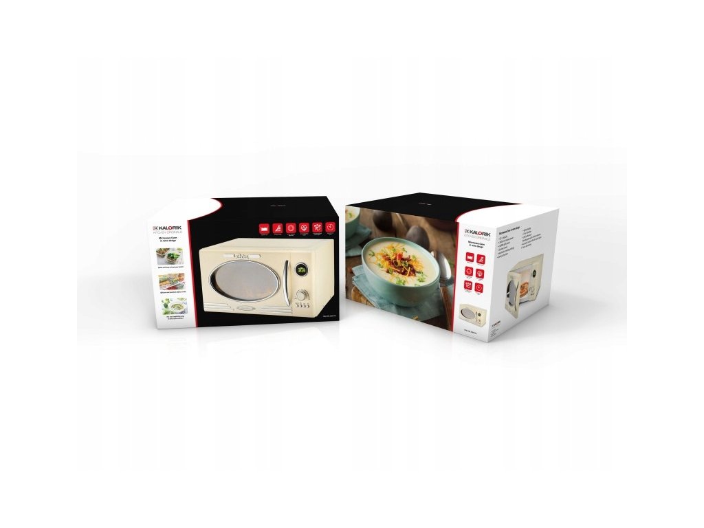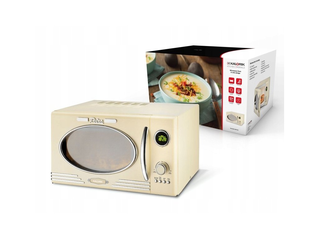 Stylowy i elegancki retro design oraz funkcjonalność cechują najnowszą kuchenkę mikrofalową firmy Kalorik. 8 podstawowych automatycznych programów gotowania oraz regulowany zakres mocy umożliwi szybkie przygotowanie ulubionych potraw, a dodatkowa funkcja rozmrażania, która nieraz wybawi nas z kłopotu. Moc mikrofali to 900W, zaś grilla aż 1000W!