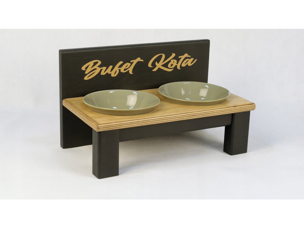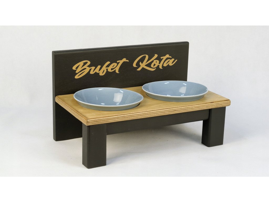 Miska pre psov - Black and Wood - Cat Buffet 2 misky CER 350 ml