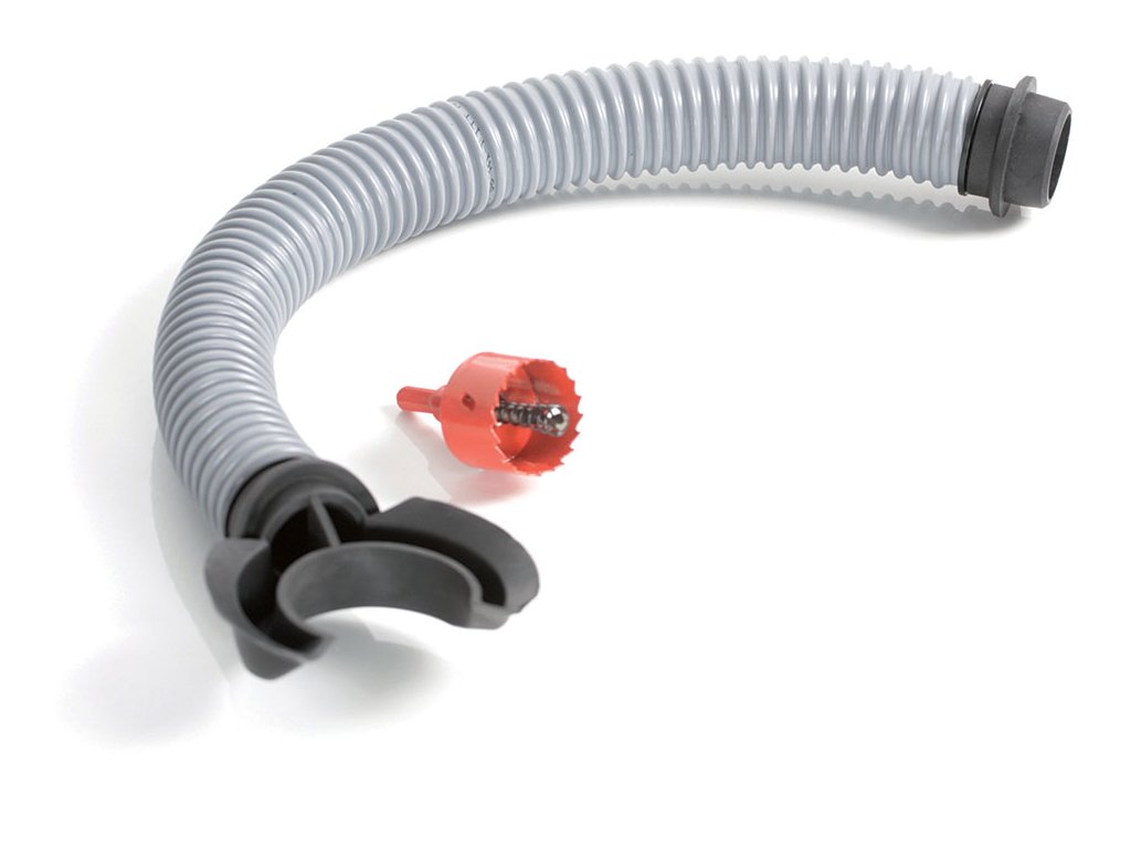 Właściwe wykonanie przyłącza, pozwala na uzyskanie również funkcji "przelewu". Gdy beczka uzupełni się wodą powyżej poziomu otworu w rynnie, woda przestanie napływać do deszczownicy. Dzięki temu deszczówka nigdy nie przeleje się wieczkiem deszczownicy.