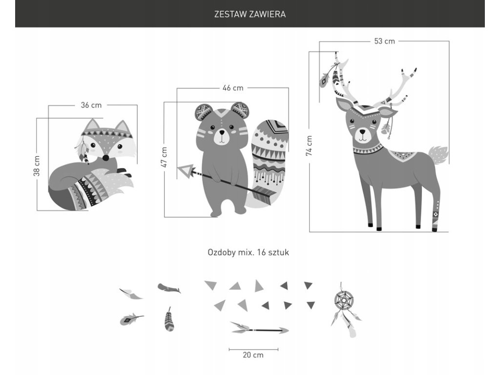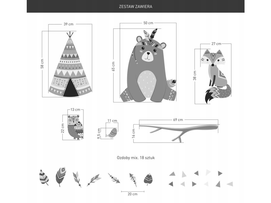 Nálepka na stenu BEAR FOX OWL DEER Indian XXL
