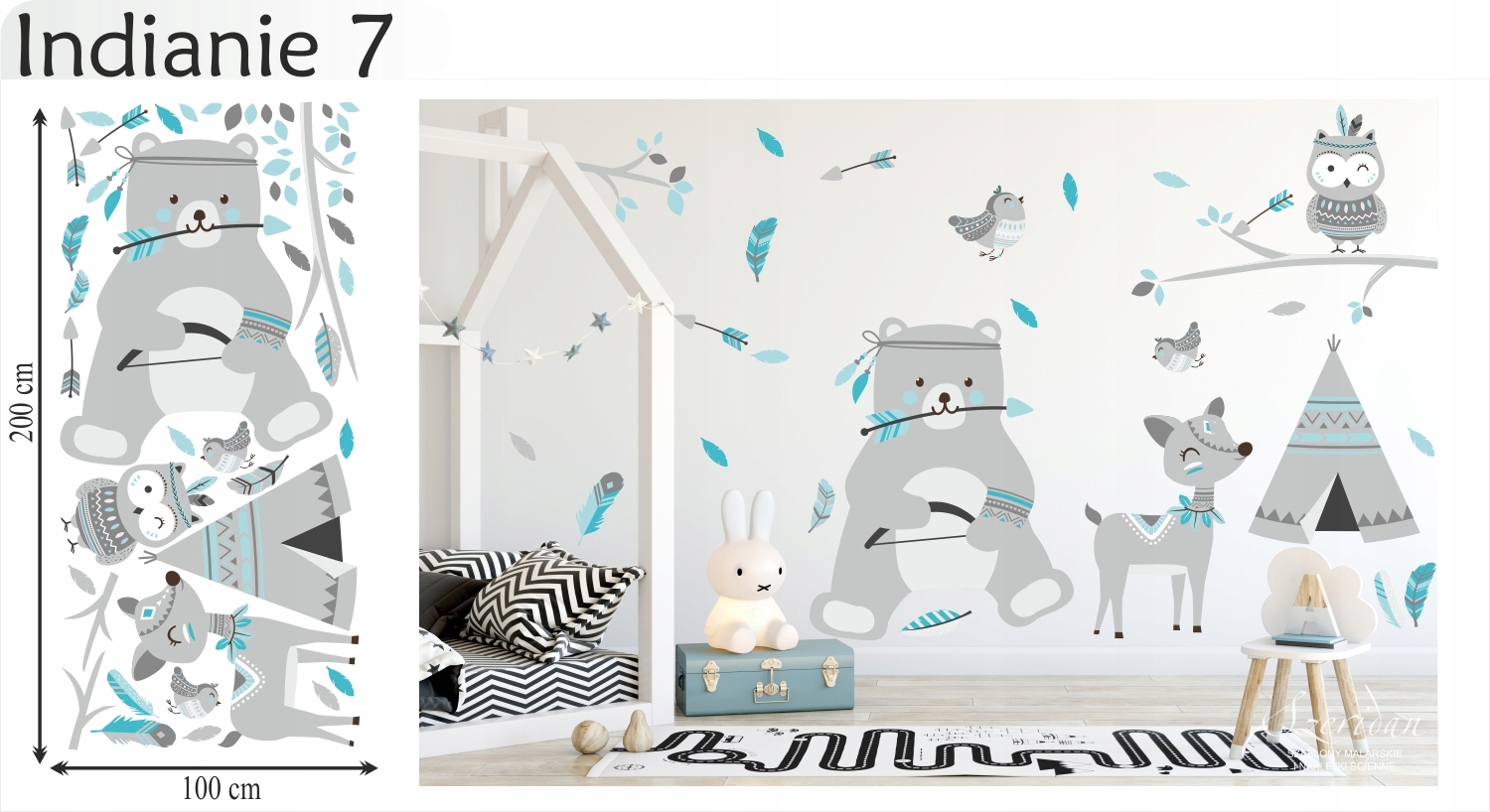Nálepky na stenu pre deti zvieratká Indiáni veľkosť XXXXL.