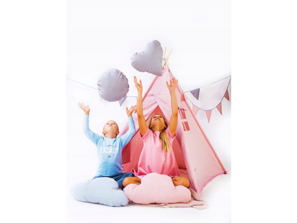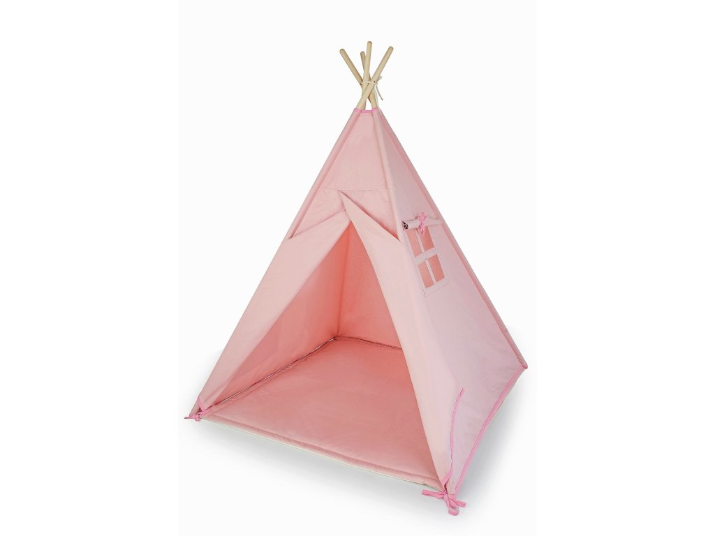 • 1szt. namiot TIPI o wymiarze podstawy 110x110 +/-2cm wysokość po rozłożeniu 155cm +/-2cm (kol.pudrowy róż);