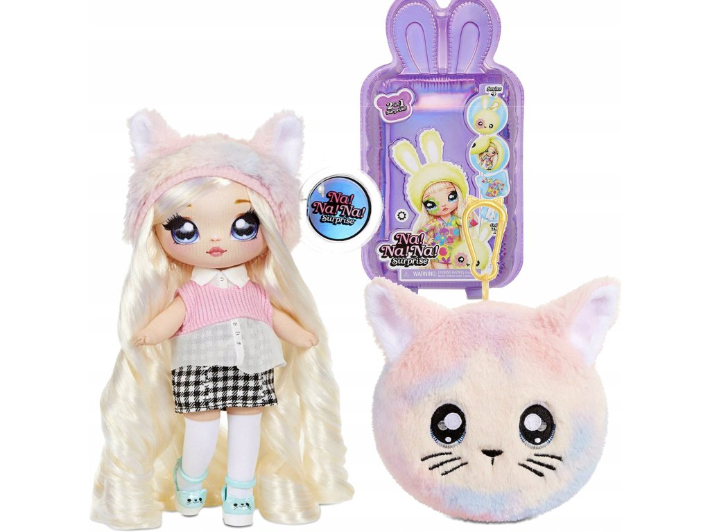 W tym niezwykłym zestawie NIESPODZIANCE znajduje się urocza torebka, które swoim wyglądem przypomina głowę zwierzaka, z uszami, wyszytymi oczami i noskiem. Można w niej schować wszystkie akcesoria oraz uroczą laleczkę. Laleczki mają ok. 20 cm i wykonane są z tkaniny. Mają duże oczy i piękne włosy, a do tego każda z nich charakteryzuje się wyjątkowym strojem.