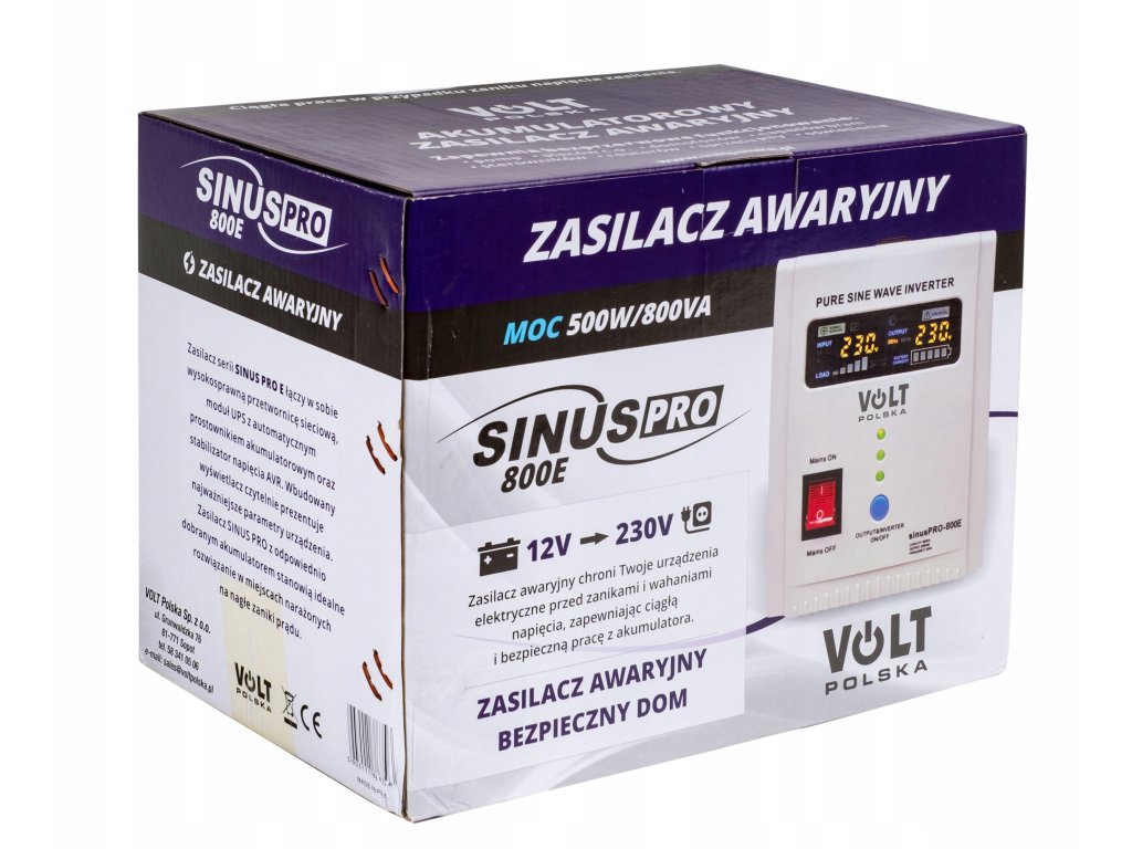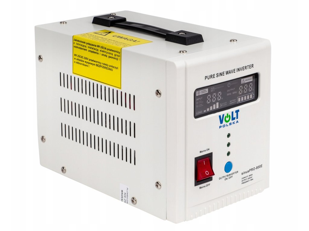 Ten model przetwornicy VOLT POLSKA sinusPRO został specjalnie skonstruowany do awaryjnego zasilania różnych urządzeń. Idealnie nadaje się do awaryjnego zasilania pieca centralnego ogrzewania lub z kominkiem z płaszczem wodnym. Podłączenie przetwornicy jest bardzo proste. Przetwornice należy podłączyć do gniazdka z prądem zmiennym 230V, do przetwornicy wyjście(OUTPUT) 230V AC podłączamy, np. piec CO bądź inne urządzenie a do wejścia(INPUT) 12V DC przetwornicy podłączamy akumulator. Podczas, gdy napięcie jest w sieci, przetwornica dzięki wbudowanemu prostownikowi, ładuje akumulator prądem 10A. Kiedy nastąpi zanik napięcia, przetwornica automatycznie przejmuje kontrole i piec CO jest nadal zasilany. Kiedy napięcie pojawi się ponownie, przetwornica przechodzi w stan ładowania lub doładowywania akumulatora, natomiast piec jest zasilany z gniazdka 230V.