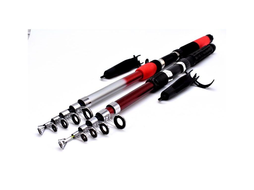 2 Wędki teleskopowe, sztywny kompozytowy blank uzbrojony w dobrej jakości przelotki porcelanowe, rękojeść z pianki . Dwie długości wędek, krótsza 2,1m i 2,4m doskonale sprawdzi się zarówno przy metodzie spławikowej, lekkim gruncie,jak i metodzie spinningowej. Dłuższa wędka o długości 2,40m umożliwi swobodne wędkowanie nawet przy bardziej zarośniętym brzegu.Wędki są w różnych kolorach: czerwone, zielone, niebieskie , w zależności od dostępności.