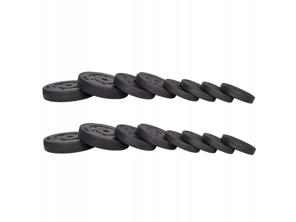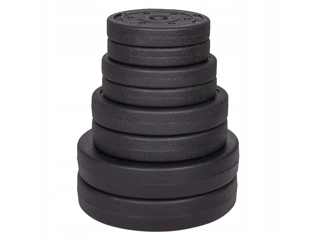 Obciążenia bitumiczne znajdujące się w zestawie pozwolą na indywidualne dopasowaniehantli do aktualnych możliwości. Kiedy ćwiczenia staną się już łatwiejsze można na gryf dodać kolejny talerz, aby uzyskać lepsze efekty treningowe.