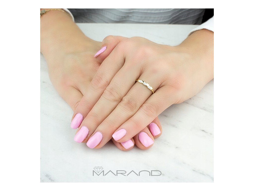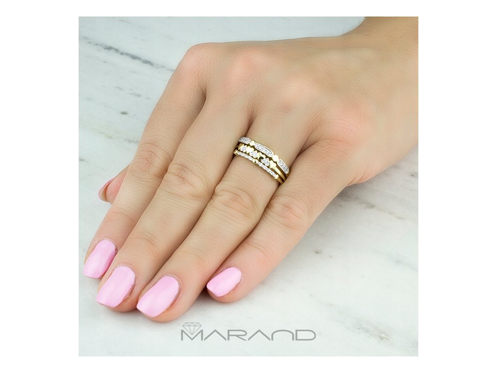 Pierścionek doskonale prezentuje się zarówno solo, jak i noszony razem z innymi modelami.