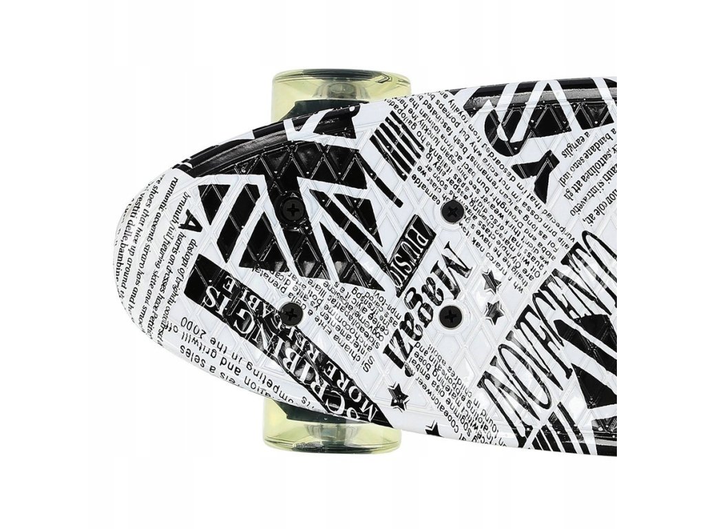 Pennyboard Art Paper Nils Extreme, charakteryzuje się ciekawym designem. Deskorolka została wykonana ze sztucznego tworzywa o nazwie polipropylen, w skrócie PP.