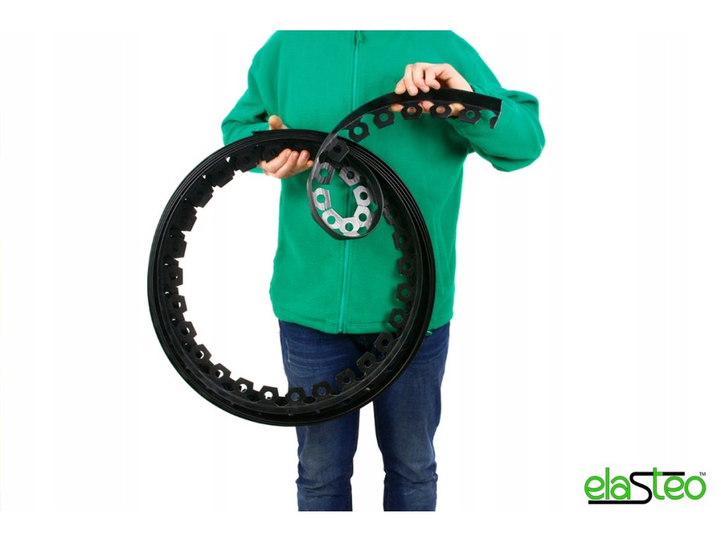 Elasteo montuje się za pomocą kotew, których używa się do nadawania kształtu. Obrzeże występuje w długim odcinku, co pozwala na tworzenie różnorodnych łuków oraz okręgów. Dzięki temu można pięknie wyeksponować drzewa i krzewy ozdobne oraz nadać wyjątkowy charakter każdemu ogrodowi
