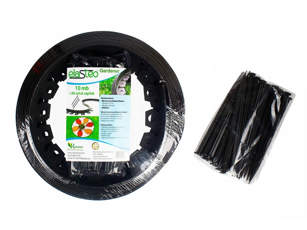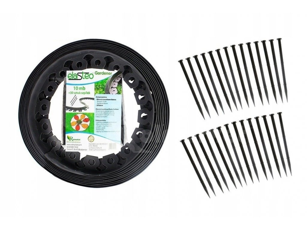 Obrzeże trawnikowe ogrodowe czarne 40mm x 10m Elasteo + 30 kotew