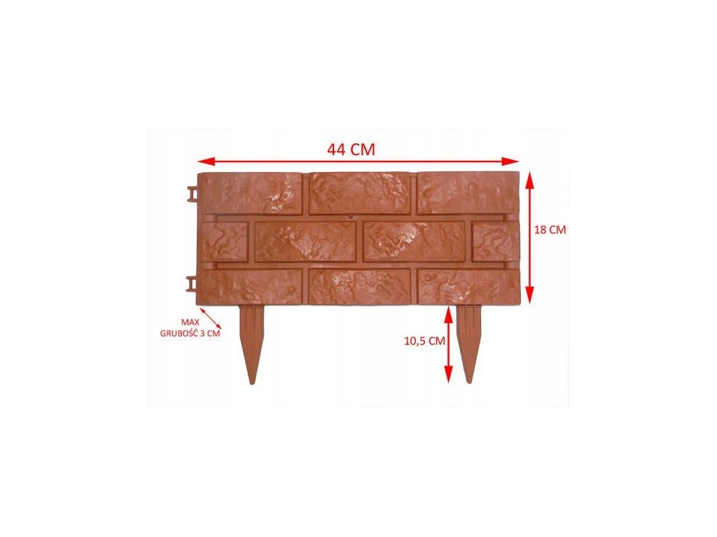 Dzięki swojej wysokości idealnie sprawdza się jako krawężnik lub obrzeże przy rabatkach, ogrodzeniach, oczkach wodnych itp.