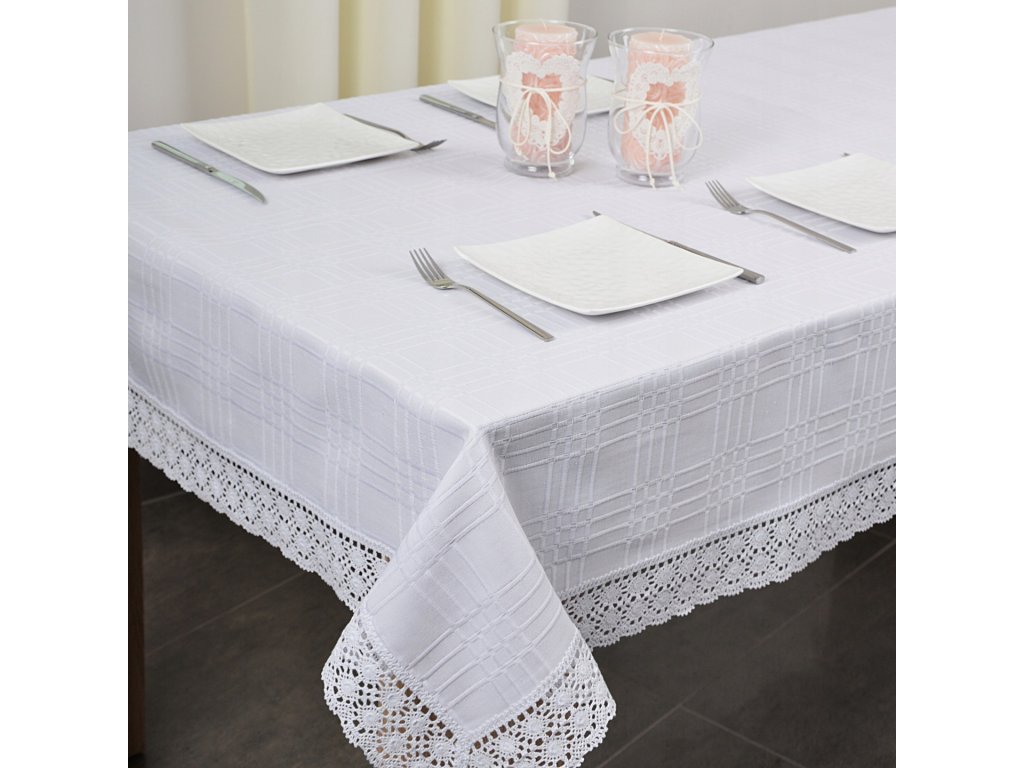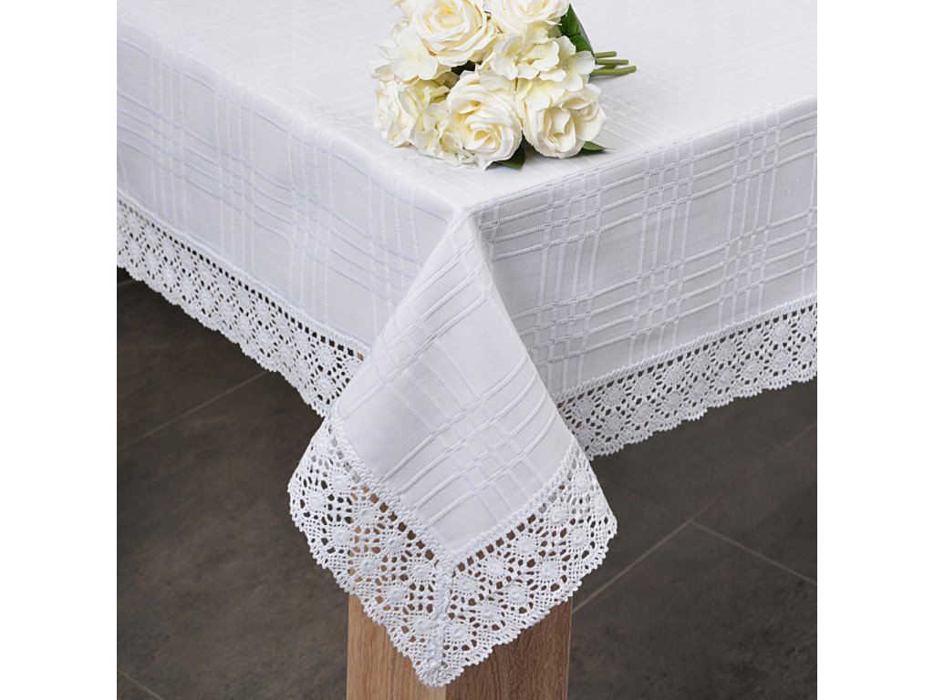 Obrusy bawełniane z koronką to wyjątkowa kolekcja żakardowych obrusów wykończonych ozdobną koronką bawełnianą o szerokości 7 cm.