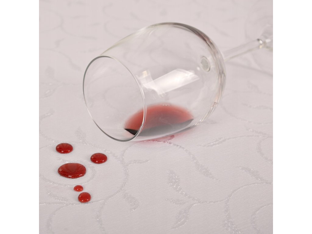 Tkanina pokryta jest powłoką plamoodporną, co zabezpiecza przed wchłanianiem płynów i chroni przed zabrudzeniami.