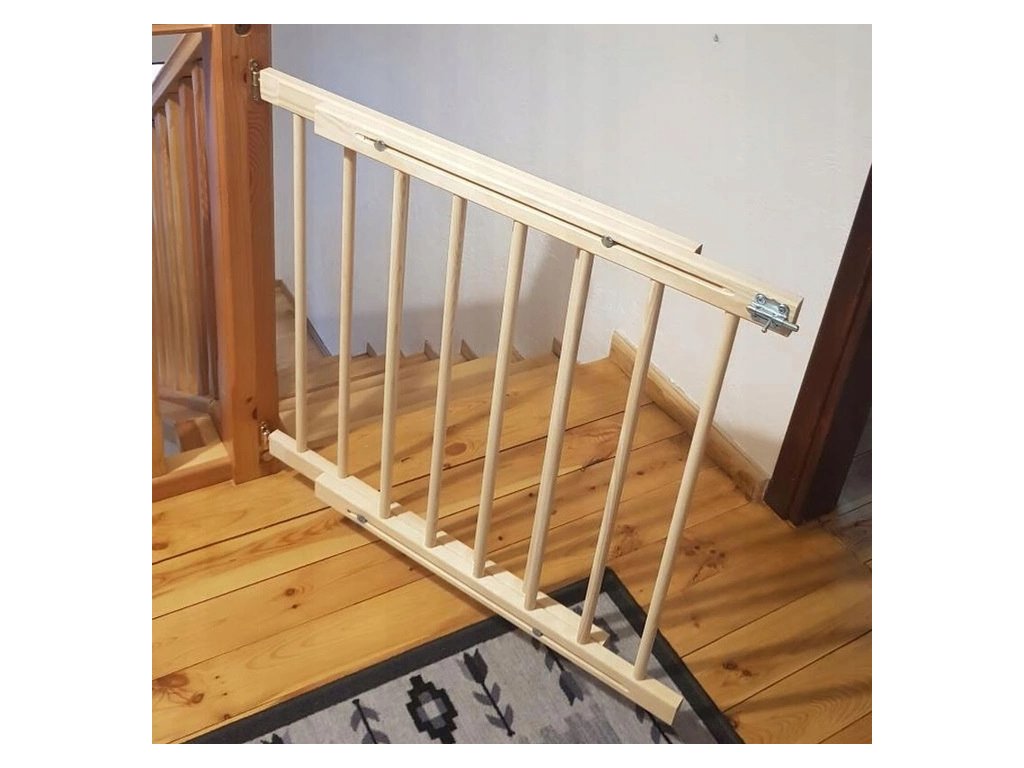 Bramka zabezpieczająca wraz z elementami montażowymi (dodawane w zestawie) waży około 6 kg. Jej ciężar to zaleta, gdyż świadczy o wysokiej jakości produktu - szczególnie tych wykonanych z drewna.