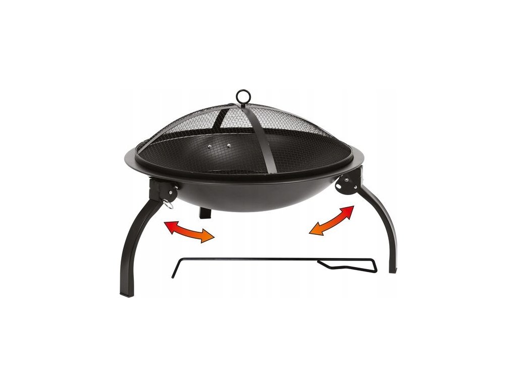 -3 składane stalowe nóżki chronią podłoże przed kontaktem z rozgrzaną misą oraz ułatwiają transport i przechowywanie