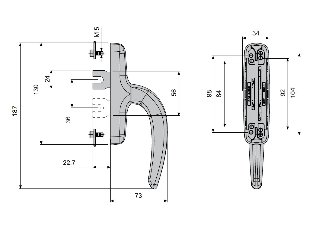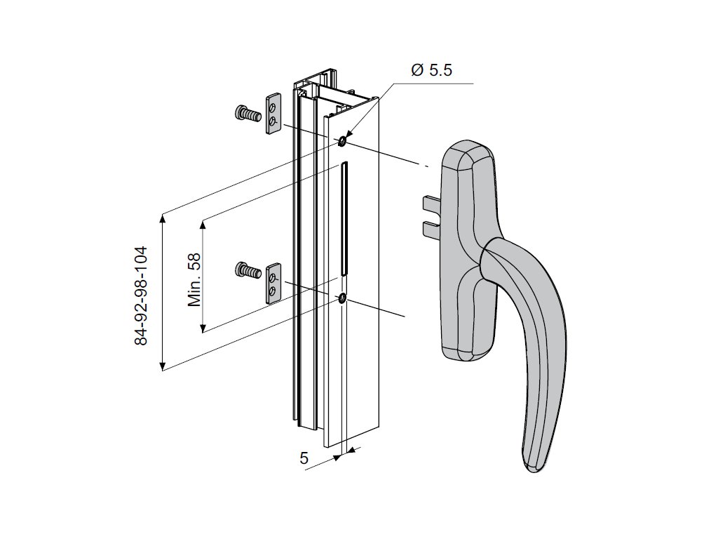Okno rukoväť Okna " FAPIM pre HLINÍK strieborný