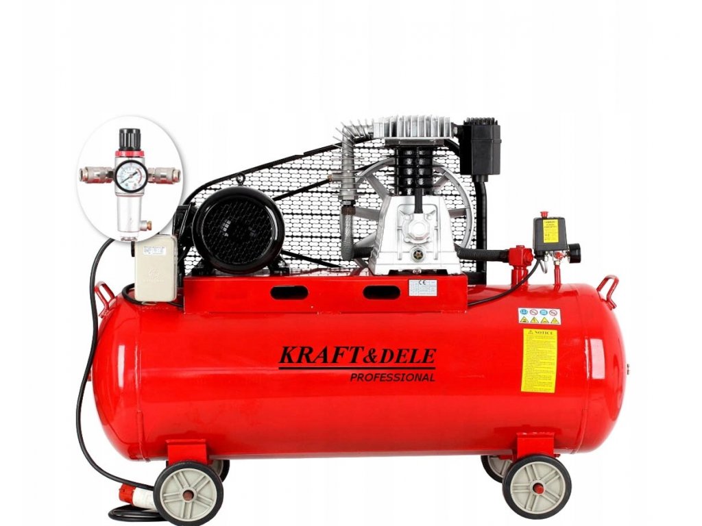 Kompresor olejowy  Kraft&Dele służy do prac lakierniczych, pompowania kół, pracy z kluczami pneumatycznymi, prób szczelności hydraulicznych.