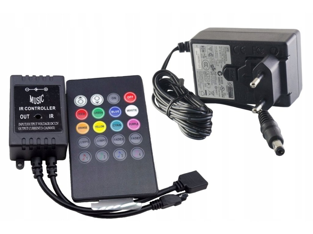 2. Sterownik muzyczny dedykowany do taśm LED RGB + bezprzewodowy pilot IR 20key ( na podczerwień ),