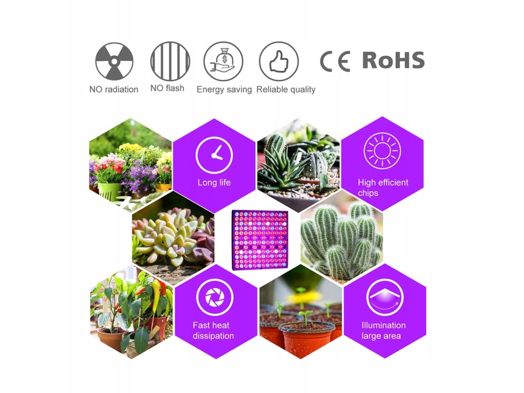 * WYSOKA WYDAJNOŚĆ: Jeśli chodzi o moc LED, ta tablica świetlna jest bardzo wydajna. Niskie zużycie energii oszczędza rachunki za prąd. Ta panelowa lampa do uprawy o pełnym spektrum zapewnia bardziej użyteczne światło, które pomaga roślinom rosnąć szybciej i najbardziej odpowiednie spektrum światła potrzebne roślinom na wszystkich etapach wzrostu.