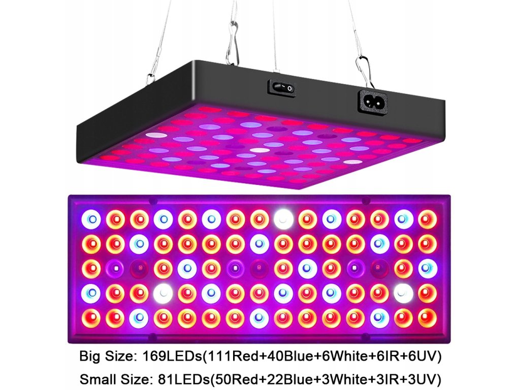 Pełne spektrum 169 diod LED: 28 * 28 * 3 cm / 11,02 * 11,02 * 1,18 cala