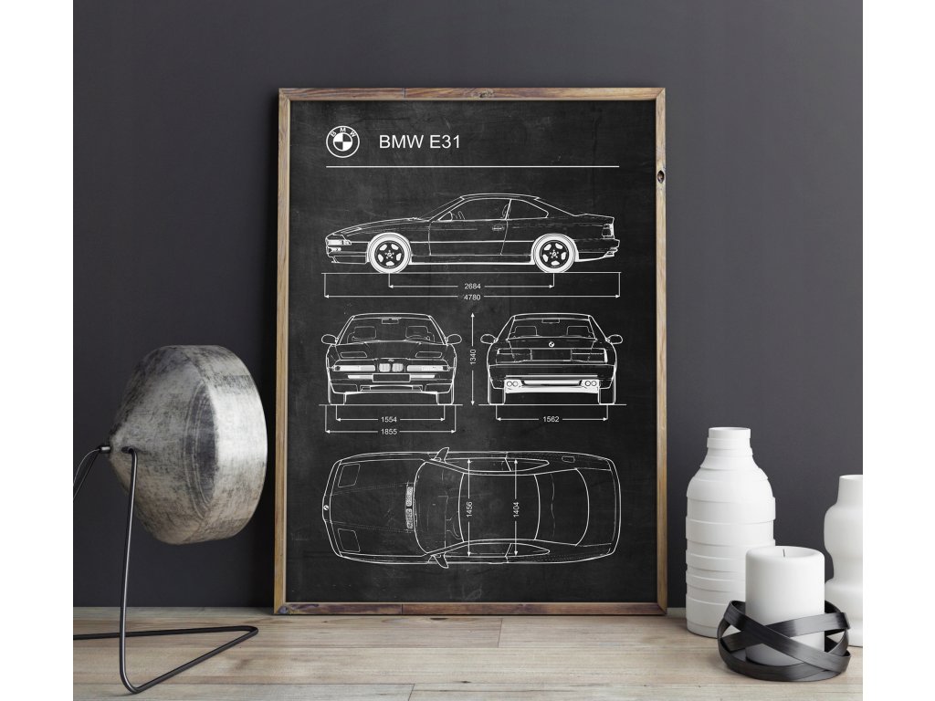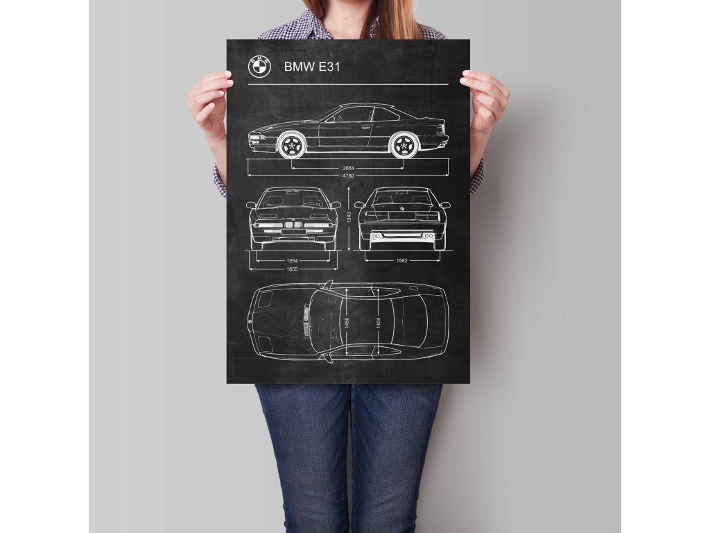 Plagát BMW E31 Retro-Patent Schémy Plagát