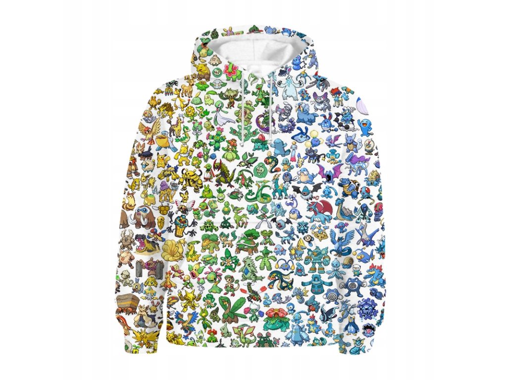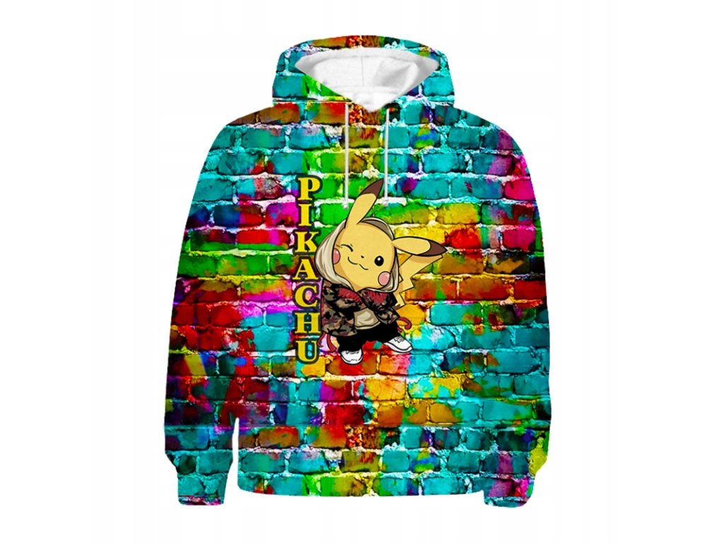 Piękna bluza dziecięca z kapturem  z nadrukiem zainspirowanym kultowym serialem Pokemon